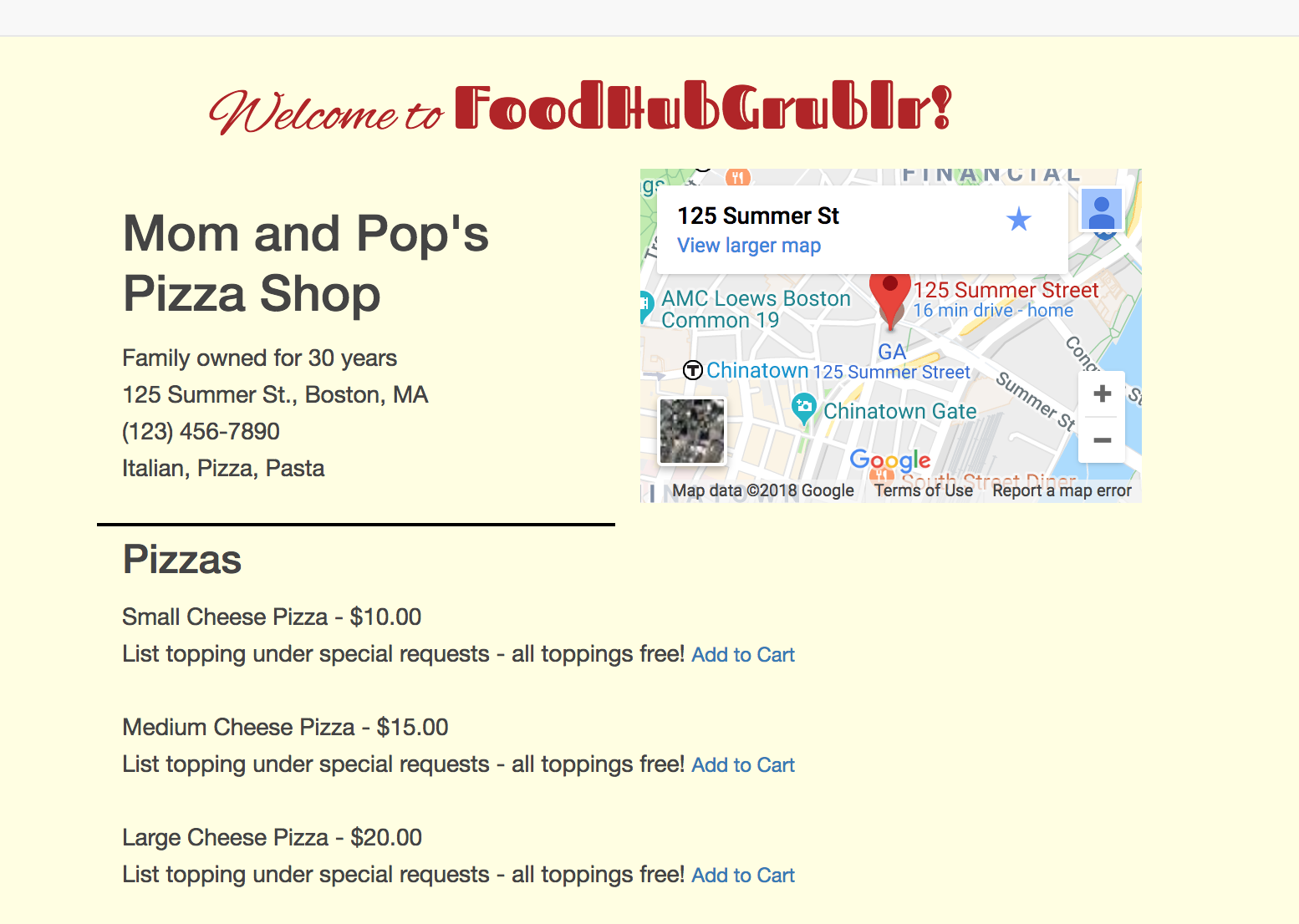 FoodHubGrublr is an online food delivery marketplace. It allows users to select menu items to order and be delivered, as well as pay online, and it also allows restaurant owners to register their own restaurants and list restaurant information and menu items.